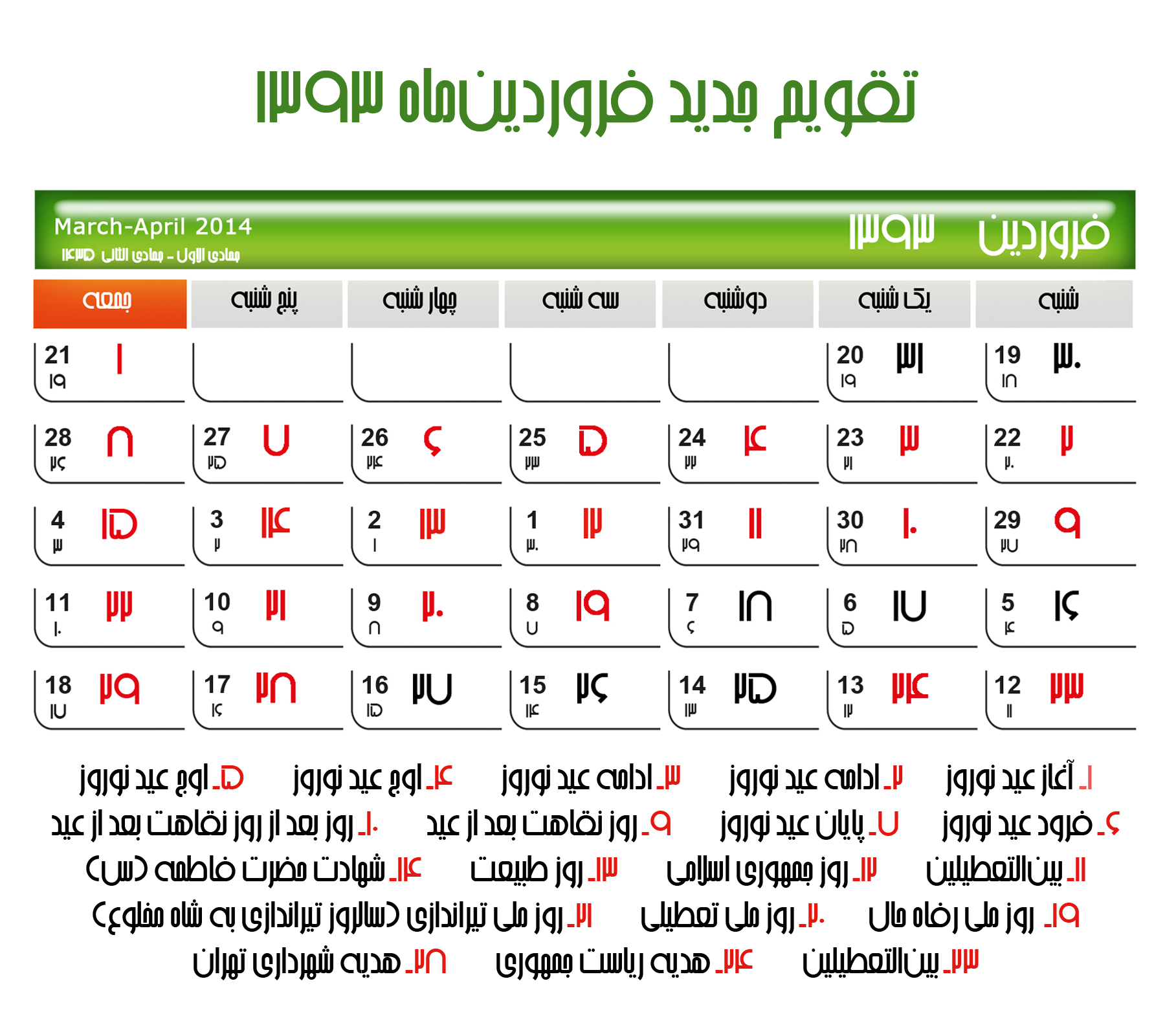 در پی اظهارات گسترده اقشار وسیع مردم مبنی بر کمبود تعطیلی بخصوص در ایام نوروز و تقاضای گسترده آحاد مردم برای افزایش تعطیلات نوروز، هیئت دولت طی جلسهای فوری تقویم فروردینماه ۱۳۹۳ را تغییر داد.