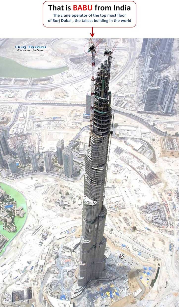 نه عزیزم !!...کارگر هندی که روی جرثقیل روی بلندترین برج جهان در امارات داره کار میکنه